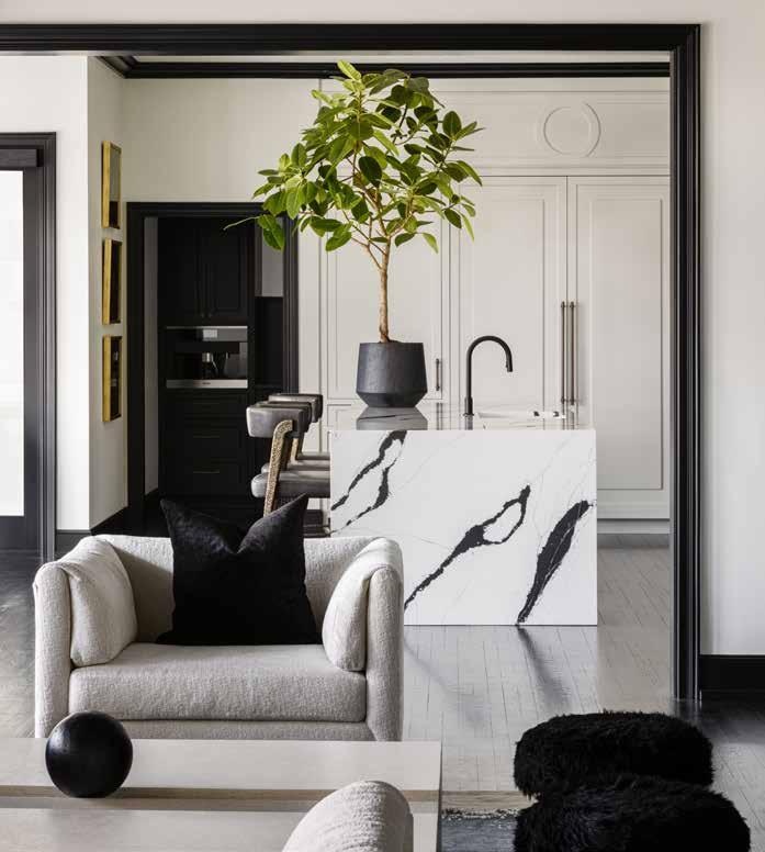 That philosophy becomes especially important in the home’s expansive open-concept living area, where scale could easily overpower intimacy.