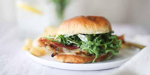 Lightly butter the inside of the bun and toast in a skillet or oven until golden brown. Spread a layer of garlic aioli on the bottom bun. Add the sliced grilled chicken breast. Place the pepper jack cheese over the hot chicken to slightly melt it. Layer on the crispy bacon slices. Add halved cherry tomatoes and a small handful of arugula. Spread the jam on the top bun. Enjoy!