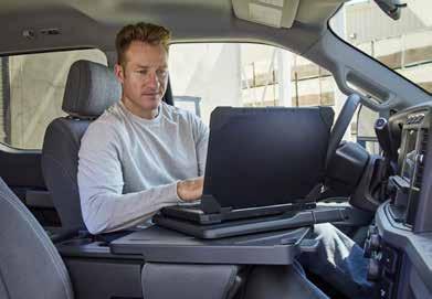 Knowing your Ford truck often dubs as your office, the versatile center console got an upgrade to keep you organized, with features that include clamps for securing materials and a spacious setup ideal for any project. Additionally, the Ford Work Surface provides a flat and ergonomic space for completing paperwork, setting up your laptop, or enjoying a meal. With 11 lockable positions in 5-degree increments, you can customize the rotational angle of the tabletop surface or leave it in the home position. This feature is available with both bench and bucket seating configurations, offering flexibility and convenience.