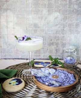 **Pansy-Mint Sugar: muddle pansy petals, mint leaves and granulated sugar. The purple color is completely natural and stunningly bright.