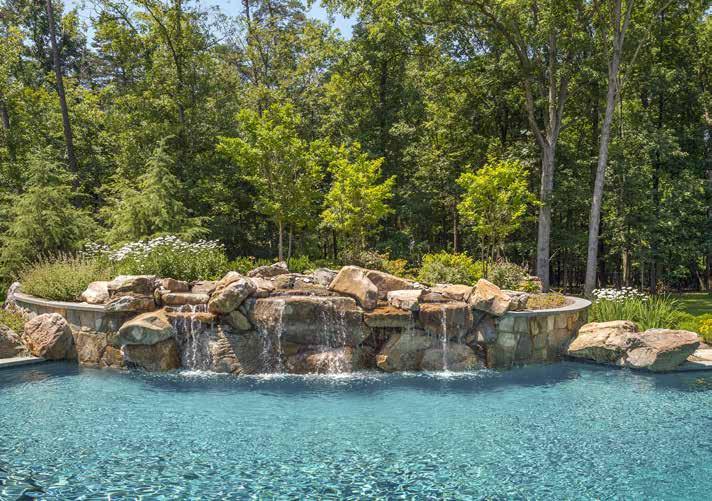 This Centreville home was purchased with an eye towards the best of both worlds: a larger than average property due to the lot's location, while still being in a friendly, close-knit neighborhood. Kane Landscapes was engaged to design the entire property to allow for a simple family weekend, a large party or even a backyard wedding. The new landscape consists of paver driveway accents, a large pool with a waterfall wall and spa, large covered deck with outdoor kitchen, two pavilions, a sports court for private family fun, a vegetable garden and even an outdoor shower tucked away in the garden. To book your consultation, see kanelandscapes.com
