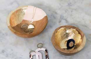 • Once the gold leaf is perfected, gently brush over the leaf with some Mod Podge to seal it to the bowl.