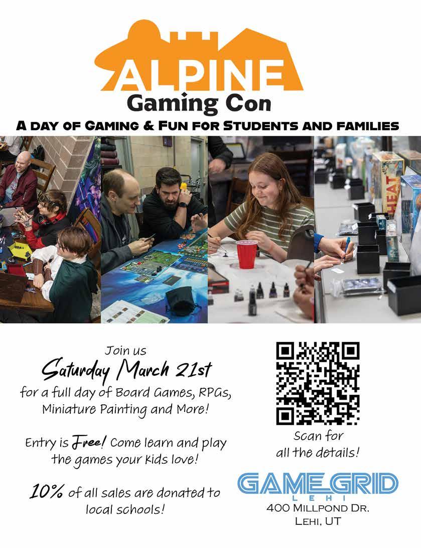 On March 21st, Game Grid Lehi will host its annual Alpine Gaming Convention, a fundraiser benefiting gaming clubs at high schools throughout northern Utah County.