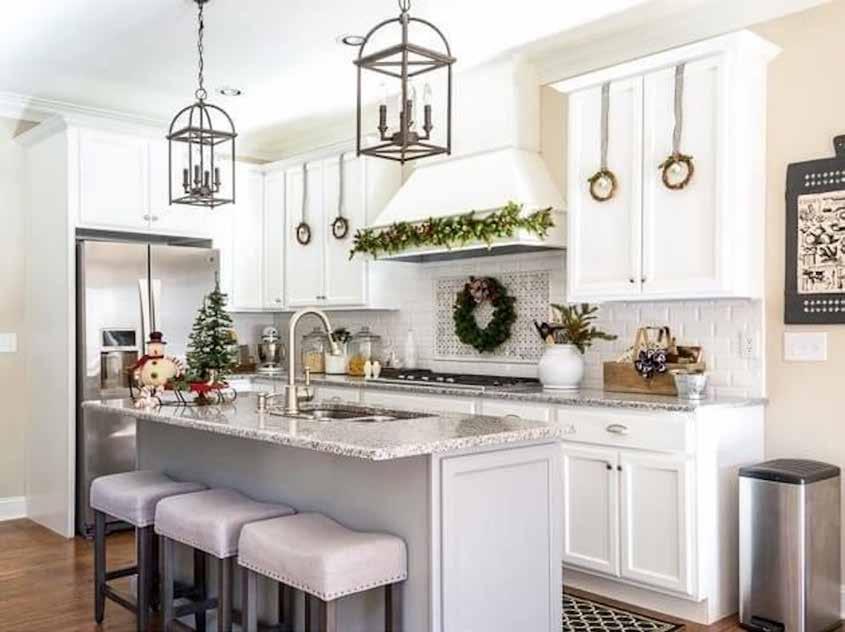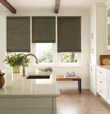 Want a softer look in your kitchen? Roman shade vignettes come in a variety of colors and can be rolled up to let the light in.