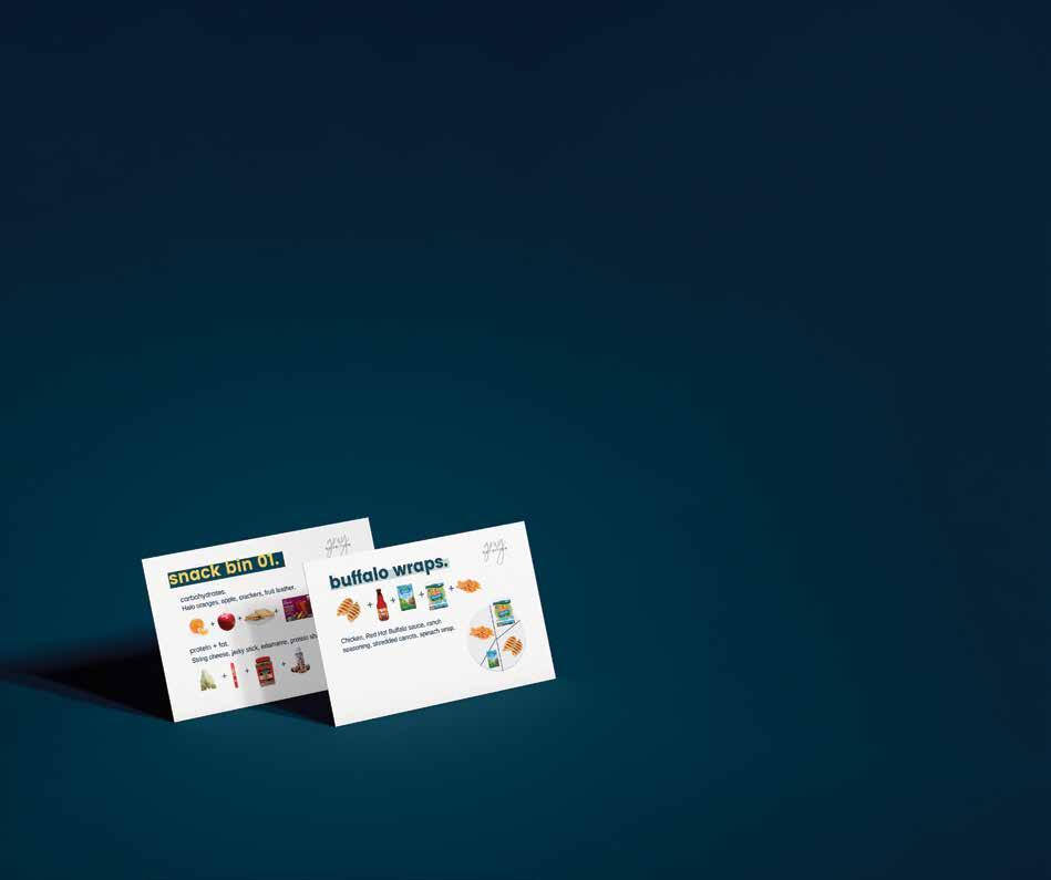 healthy meal in front of their families with five ingredients or less.” And she’s making it easy, giving her clients all the tools they need, plus a visual-aid to help everyone in the family conceptualize each meal, even the littles. “I get a lot of parents who want to know how to teach their kids to be healthy, and this provides a good visual cue to hang on their fridge, or let their kids pick cards for the week so they better understand ‘oh, this is what my plate needs to look like.’”