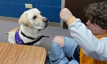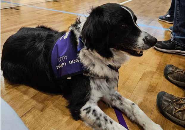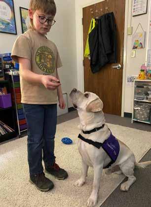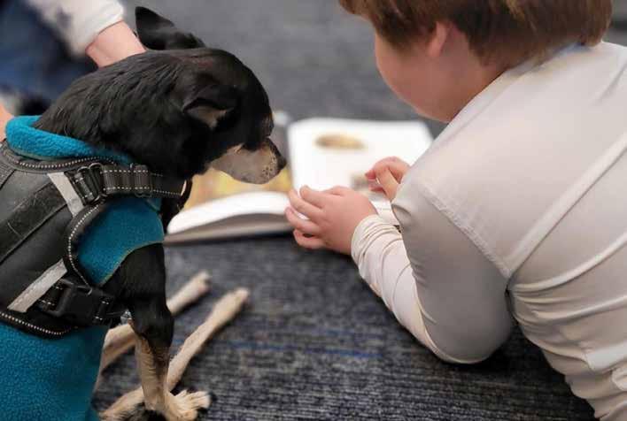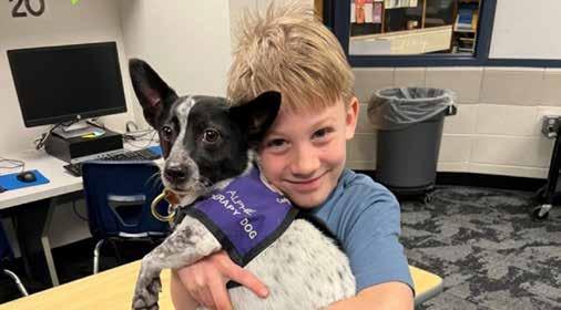 Lindsay has also seen the power of her therapy dog at work. “The kids open up more and there is less tension getting to know each other with a dog than one-onone. Everyone is more relaxed. I see their confidence grow by having fun with Rocky and by him listening to their commands.”
