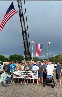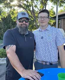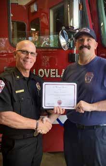8: Men's networking group "The Hustle Hour" at Loveland's Axe to Grind! 9: Lenders vs Agents golf tournament with Kari Schaneman, Aaron Nelson, James MacNaughton, Mandy Mullen, Eric Thompson, and Ali Petrichor. 10: Chief Sendelbach awards Captain Ben Anderson on twenty years of service with Loveland Fire & Rescue. 11: Katie Johnson, Desiree Gustafson, Rylee Hupp, and Kari Wissel at The Taste of Loveland. 12: Bryan Eslao passing the finish line at the Loveland Liberty 5K. 13: Aaron Ellingson, Nicholas Dunagan, Aimee Trainor, Tyrel Trainor, Amy Lucas & daughter Ruby at the Loveland Liberty 5k with Health4Heroes. 14: Jason Baltazar & Ty Montgomery at Blue Federal Credit Union's Kick-off ParTee for the Ascendant Golf Tournament.