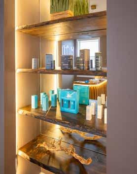 indoor waterfall gently flows alongside a Himalayan salt wall, adding a subtle sensory element that enhances relaxation. Even the lighting, warm and intentional, reinforces the idea that this is a place meant to restore rather than overstimulate.