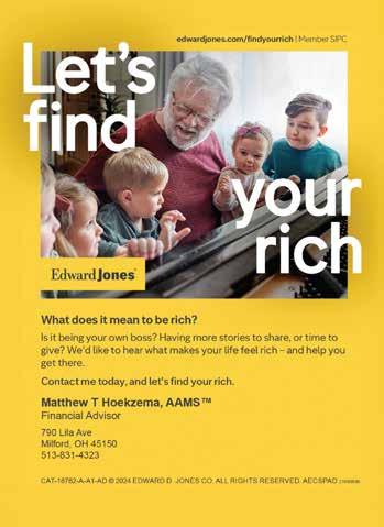 Investment Management | Tax & Estate Strategies | Retirement Planning | Wealth Building YOUR PARTNER. YOUR SUCCESS. R ISTIN BENDURE Little Miami High School Lacrosse, Gymnastics, Figure Skating Miami University Biomedical Engineering 2024 Scholarship Winner 57 | CITYLIFESTYLE.COM/LOVELAND JUNE 2024