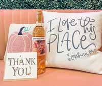 Wine lover? Choose a bottle of rosé, cards and a decorative pillow. RoseBoutiqueWineBar.com