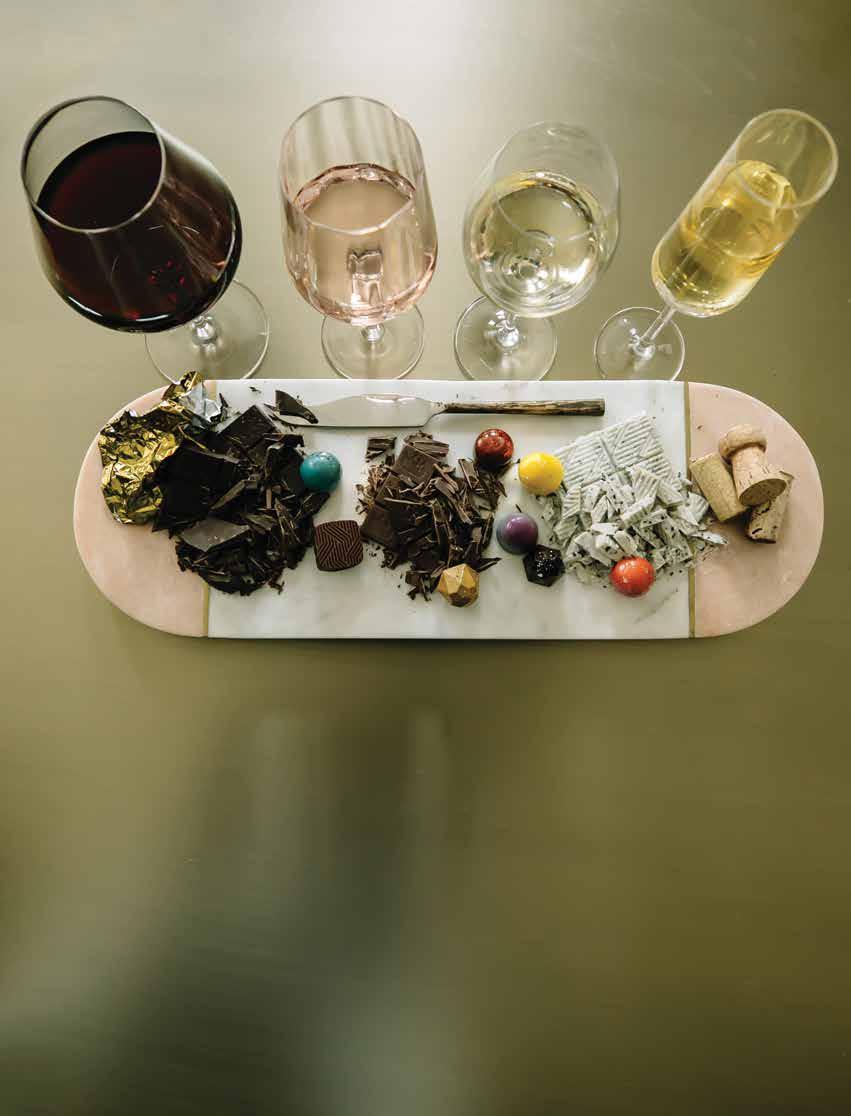Wine and chocolate have a lot of similarities to each other. Both contain flavanols (antioxidants) and polyphenols (compounds found in plant-based food) that are good for you and have anti-inflammatory properties. These characteristics affect flavor so it’s somewhat challenging to pair wine and chocolate together. The more polyphenols, the more pronounced the bitter taste.