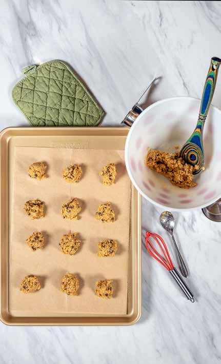 Now the space downstairs welcomes Airbnb guests with a plate of gluten-free oatmeal chocolate chip cookies. Her recipe hangs on the wall in her handwriting and a brief history is written in the notes for our short-term tenants. I have received texts and photos from former guests who have made their own version of her cookies. When I visit her, I leave a batch of cookie dough, spooned into balls in the freezer, so she can have freshly baked cookies long after I’ve gone back home.
