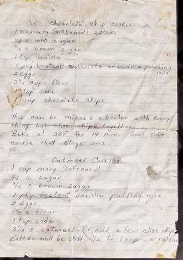 Over the next 14 years, we were blessed to have her as an ever-present part of our family. It was so welcoming to come home to the sweet smells flowing from the basement. Although she made cakes, pies, rice krispie treats and an occasional rhubarb crisp, my favorite was her oatmeal chocolate chip cookies.