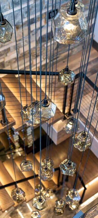 Rocker’ style. The dark tones complement the details in texture and metallic highlights. The partnership between wood accents and the use of multi-stone work makes the Mountain Modern home feel original and warm. Every aspect was meticulously calculated and well-thought-out so that this trendy home would remain timeless.