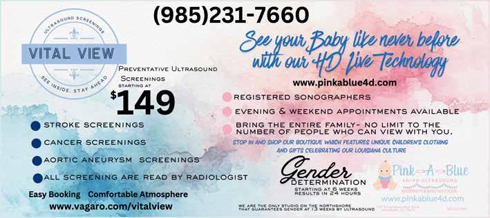 Pink-A-Blue 4D Ultrasound & Baby Boutique in Mandeville turns a prenatal appointment into a family memory, offering 2D, 3D, 4D, and HD Live sessions with baby’s heart rate, position, and estimated weight included. The studio staffs ARDMS-registered sonographers, never overbooks, and welcomes loved ones to join or FaceTime in. Relax on a pillow-top mattress, watch on three screens, then browse the baby boutique. Call (985) 231-7660, book at pinkablue4d.com, or visit 1291 N. Causeway Blvd., Suite 2, Mandeville.