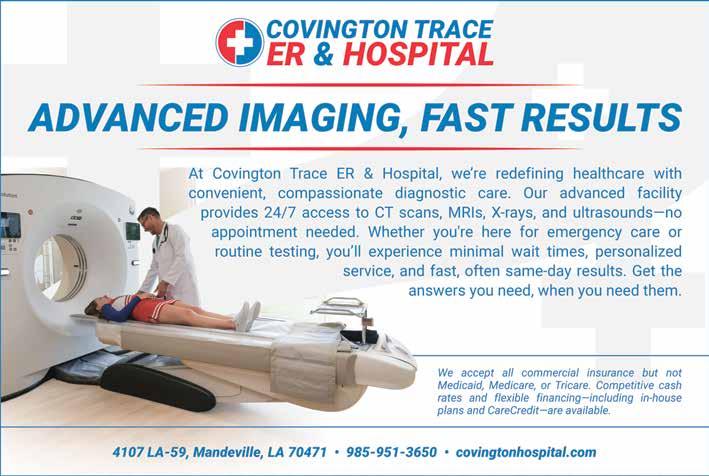Covington Trace ER & Hospital is located at 4107 LA-59 in Mandeville and is open 24 hours a day, seven days a week. For more information, or to reach the hospital directly, call (985) 951-3650 or visit covingtonhospital.com.