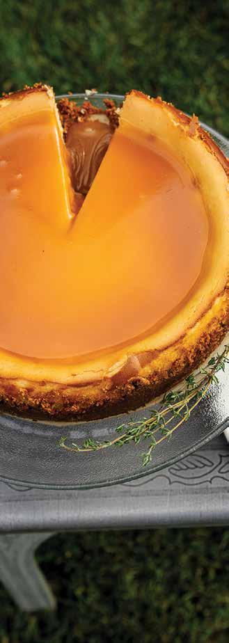 4. Remove cheesecake from the fridge and add the caramel to the top