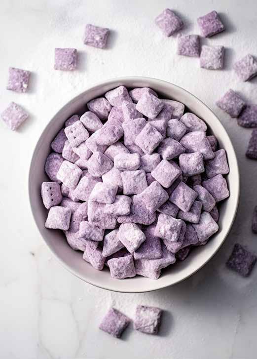 6. Spread Purple Wildcat Chow on wax paper-lined baking sheet and let cool for 10 minutes.