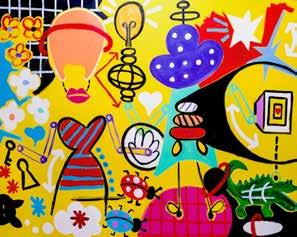 “Sugarwerks” is an artistic collaboration - feel good paintings, with a copacetic vibe that, like a jazz track, can excite your wonder from the wonderland for a few minutes out of your crazy day. These paintings are worlds painted in an artistic collaboration between Artist Oliver Corwin and Celebrity Photographer Ann Lawlor together on a walk: whimsical and mellow, along the canvas, telling abstract stories with funky characters, explosions of color, and a lot of groove - hoping to give the viewer a look into a happy world for a brief moment in time. Without preaching, the stories - also like a mysterious and deep message written on a wall - leave the viewer with food for thought.