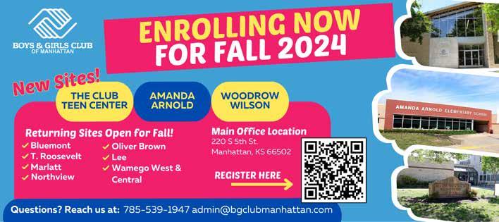 If you would like to support The Boys & Girls Club of Manhattan, volunteer, or enroll in their services, please visit bgclubmanhattan. com. To apply for a daycare spot in the Early Learning Center, visit bgclubmanhattan.com/ earlylearningcenter. You may also visit in person at 3560 Dempsey Road, Manhattan, KS, between 7am and 6pm.
