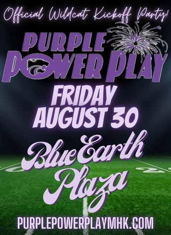 Kick off the fall sports season with Purple Power Play 2024! Enjoy live music from the Lazy Wayne Band, food trucks, inflatables, and performances by the Pride of Wildcat Land and the Classy Cats. Meet members of K-State Nation, including cheerleaders, coaches, and players from K-State teams. The on-stage host is Tyler Jackson, publisher of Manhattan City Lifestyle.