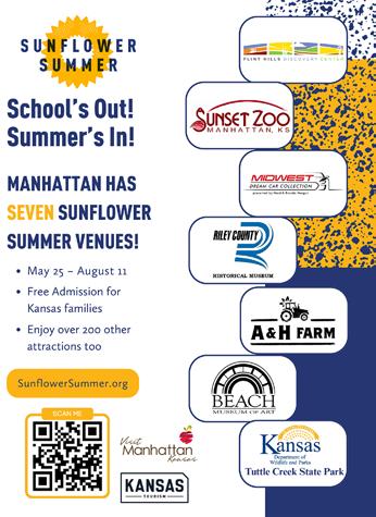 Sunflower Summer offers families a great way to explore our state with free admission to various museums, zoos, historical attractions, and nature centers across Kansas. Manhattan has seven locations, and there are over 200 attractions statewide. Collect stamps in your passport and win prizes! Sunflower Summer runs until August 11. Find more details at manhattancvb.org. Sunflower Summer is brought to you by Kansas Tourism, for Kansas residents.