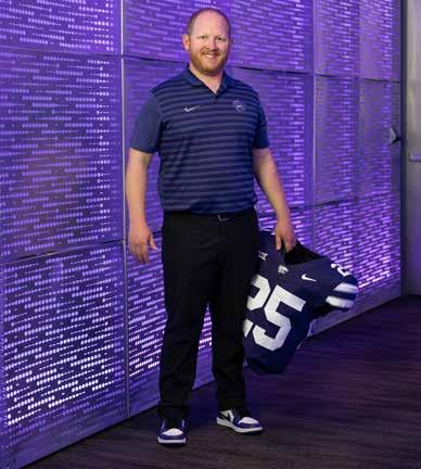 Beyond the laundry room and storage lockers is where you’ll find the boss . Head Equipment Manager Al Cerbe, wearing a purple polo and black pants with a Powercat-adorned belt, sits at his post. Born in Las Vegas, Nevada, Al moved to Northwest Mississippi as a child. In college, he served as a student manager at the University of Memphis. His first role as head equipment manager was at Northeast Mississippi Community College. He briefly worked with the Memphis Xplorers, an Arena League farm team, and later interned with the NFL’s Baltimore Ravens. Al joined K-State in 2007 as a full-time assistant. In 2011, Coach Bill Snyder recognized his hard work and dedication by promoting him to Head Equipment Manager.