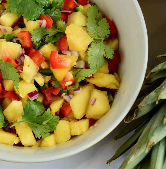 Step 1. In a large bowl, combine the diced pineapple, red onion, red bell pepper, jalapeño, and cilantro.