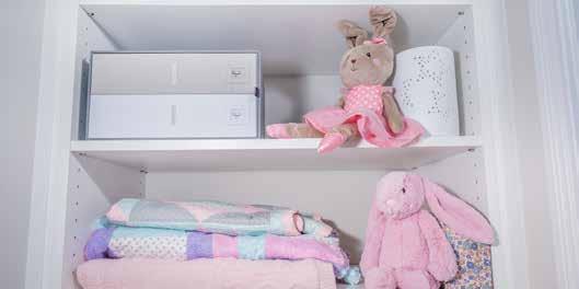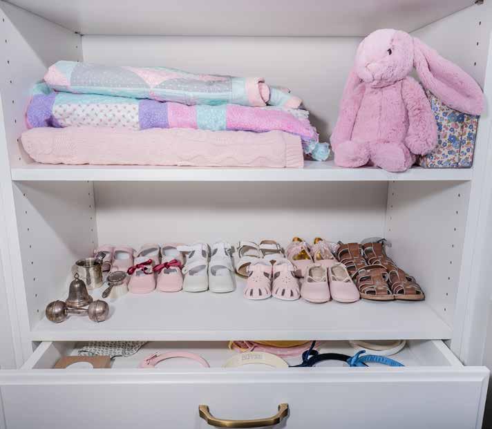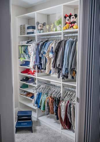 Extra shelf space in each child’s closet offered room for items like memory books, special keepsakes and often-used items like humidifiers and extra hangers.