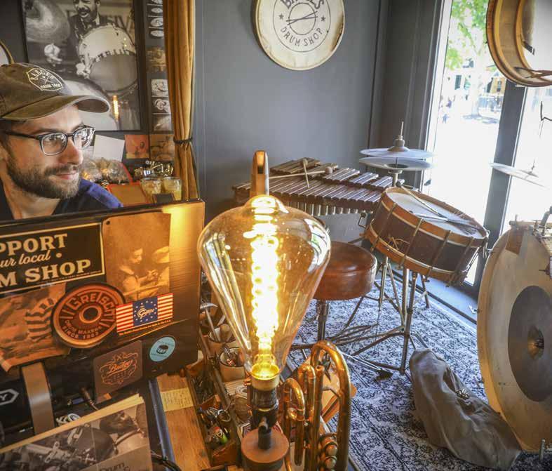 Since opening, a variety of drummers have dropped in. “I work hard to make sure I have top-quality options at every price point so that I can serve students and budget-minded drummers as readily as I can collectors and drummers looking for top-of-the-line gear,” says Charlie.