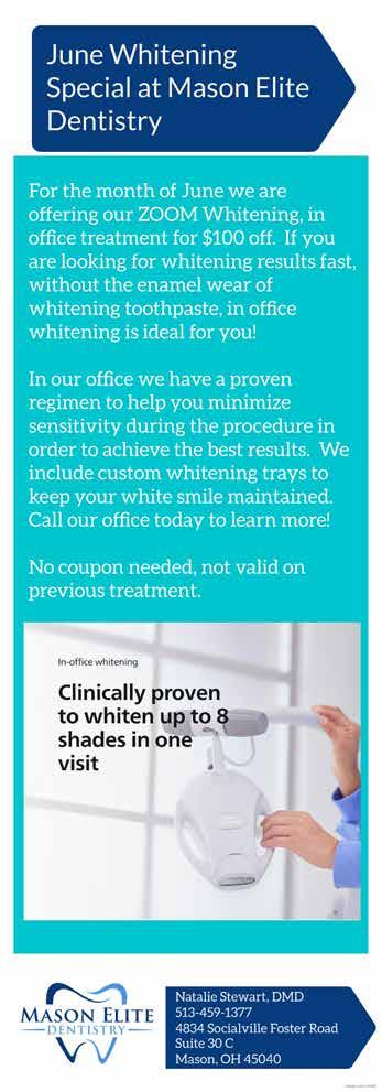 Lastly, we are excited to once again partner with Mason Schools Foundation and Mason City Schools to celebrate the 2023 Mason High School Graduates! Turn to the center spread to see a collage of this year’s seniors. Congratulations and we wish you the best in your next adventure!