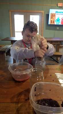 15: Building Blocks for Kids (BB4K) sponsored a weekend at Camp Courageous Kids (CCK) in March. 16: Family retreat weekends are free of charge and designed to provide respite, recreation and support. 17: The Wedigs and their service dog, who BB4K helped fund. 18: Jillian enjoys some time with the animals at the CCK barn. 19: Curtis is trying his hand in the woodshop. 20: Isabelle at the archery course. 21: Ethan at the Nature Center Treehouse.