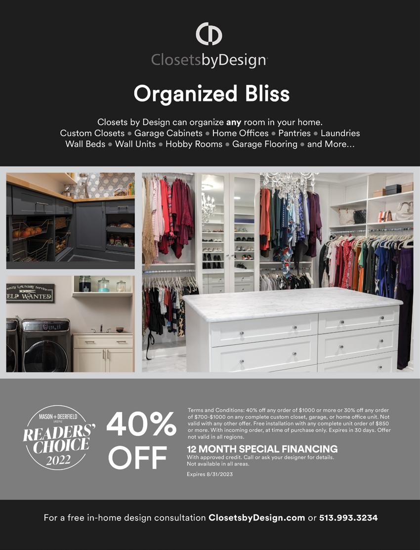 Learn Mason & Deerfield Lifestyle™ is published monthly by Lifestyle Publications LLC. It is distributed via the US Postal Service to some of the Mason & Deerfield area’s most affluent neighborhoods. Articles and advertisements do not necessarily reflect Lifestyle Publications’ opinions. No portion of this magazine may be reproduced in any form without written consent. Lifestyle Publications does not assume responsibility for statements made by advertisers or editorial contributors. Information in Mason & Deerfield Lifestyle™ is gathered from sources considered to be reliable, but the accuracy of all information cannot be guaranteed.