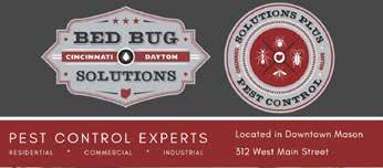 CREATING BRIGHT HEALTHY S M I L E S F O R G E N E R A T I O N S v i s i t e r b e c k d e n t a l . c o m ( 5 1 3 ) 3 9 8 - 7 0 5 1 TO P DEN T I S T 2 0 1 9 EXAM, X-RAYS & CLEANING New Patients Only Restrictions Apply. New Patients Only MENT IO N TH I S AD TO R E CEIV E We provide year-round protection for your home or business with our one-time, monthly or quarterly services! BED BUGS COCKROACHES TERMITES MICE & RATS SEASONAL INSECTS Protect your family from bites with our mosquito, flea and tick treatments. Enjoy Your Outdoor Living Space this Summer! 17 | CITYLIFESTYLE.COM/MASONANDDEERFIELD AUGUST 2023