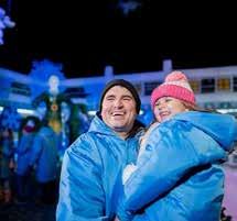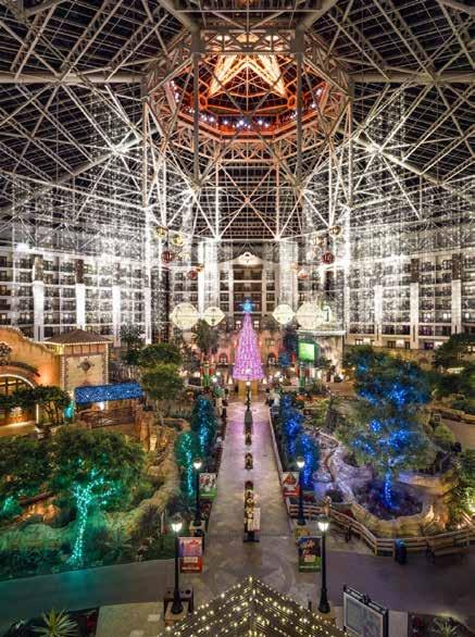 To preserve the frozen sculptures, Gaylord Texan maintains a state-of-the-art chilling system, but there’s no need to pack coats (scarves, gloves and extra apparel are suggested for those who tend to get cold). Even though it’s cool inside, the resort provides parkas to keep guests warm as they zoom down ice slides, marvel at largerthan-life displays and wander through the arctic attraction.