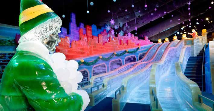 This holiday spectacle takes guests on a frosty journey from the North Pole to New York City as they explore a winter wonderland carved from more than 2 million pounds of ice, where Buddy’s hysterical hijinks are brought to life in stunning, frozen detail.