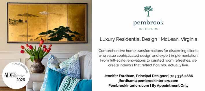 As March brings warmer days to McLean, Pembrook Interiors helps homeowners prepare for spring entertaining. We create seamless indoor-outdoor flow—from refreshing dining rooms to designing patios that extend your living space. Whether you need furniture placement guidance, color palette updates, or help creating cohesive rooms for year-round hosting, we tailor services to you. "Thoughtful planning now means effortless entertaining all season," says Jennifer Fordham, AD PRO Directory designer. Pembrook Interiors | PembrookInteriors.com | 703.336.2886