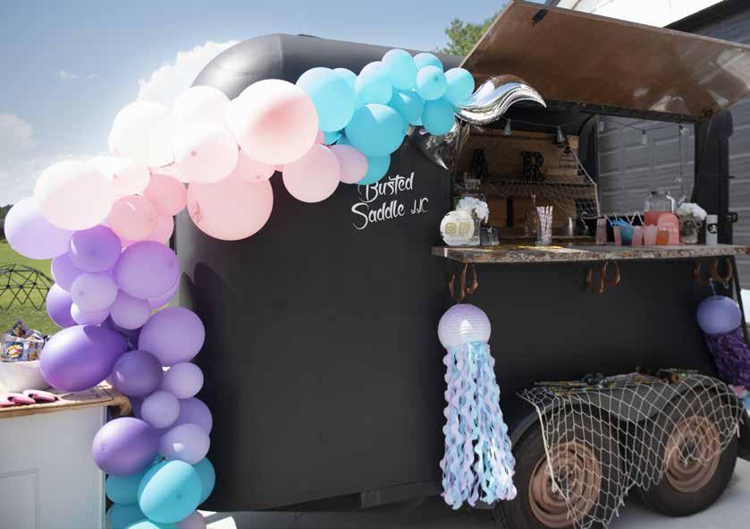 business, she purchased a dilapidated horse trailer. The “rusted and busted” state of the trailer, as well as having a horse trailer, inspired the name “Busted Saddle.” After some renovation work with the help of her husband and friends, Bustled Saddle was successfully launched in May 2022. Busted Saddle offers services for all kinds of events. Tina enjoys them all because of how unique the atmosphere is for each party, as well as the many friends she makes along the way.