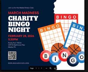 The annual Bingo fundraiser, co-chaired by Monika Collins and Daniel Carbery, returns for a night of community fun and friendly competition. Held in the Borough Community Room, the event supports local charitable initiatives and brings neighbors together for a great cause. mediarotary.org/events/mediarotarybingo