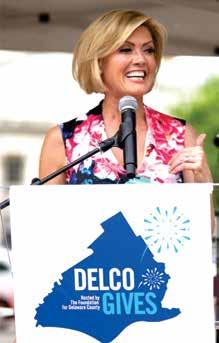 8: Delco Gives unveils donation of $1,580,987 (Grand Total reported at 1.7 million) 9: Budding young talent from Media Theatre’s Seussical performing at Delco Gives 10: Newtown Square Fire Department is just one of hundreds of non-profits seeking support 11: City of Chester host one of many Delco Gives day celebrations 12: Attendees take a break for photo opt at Delco Gives at Rose Tree Park finale 13: Foundation board chair, Cyrise Dixon and foundation president, Frances Sheehan opening night in Media 14: Jim Myers, Manager of Community Impact of Power Home Remodeling, Delco Gives title sponsor