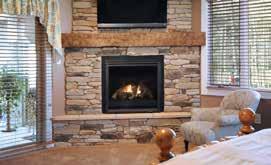 We added a Heat-n-Glo® gas fireplace. Along with the new stone facade and mantle, it adds warmth, interest, and beauty to their bedroom.