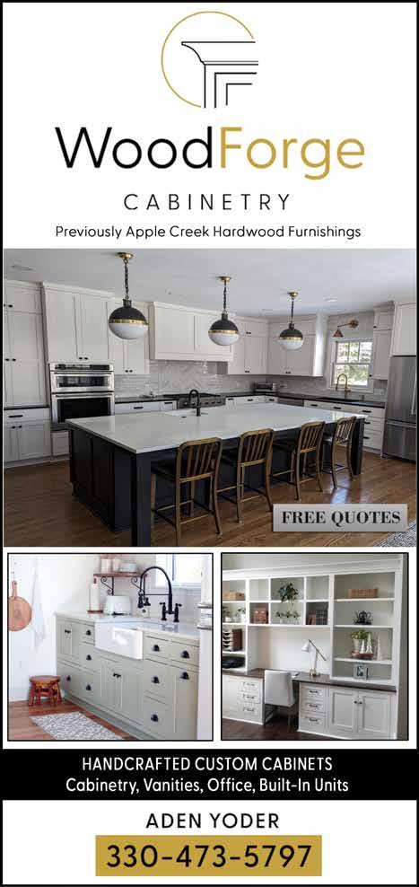 WoodForge Cabinetry brings together experience and modernization. Owner Aden Yoder has been woodworking for 24 years and sons Elijah and Kyle are also skilled craftsmen. Using 3D rendering, WoodForge and homeowners can enjoy designing cabinets, or a full kitchen remodel, to match every taste. Once designed, each cabinet is handcrafted using top end materials.