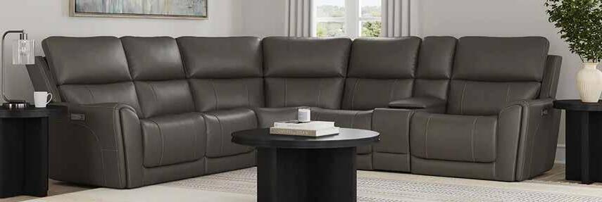 This piece features triple power and our Zero Gravity mechanism, allowing you to customize the recline, headrest and lumbar support, including reclining to a zerogravity position for the ultimate comfort experience. This sectional will be a statement in your home with its genuine leather look that is a durable, easy to clean fabric in two color choices. Flared arms, contoured seats and heavy thread stitching details give it a sleek, yet striking look. And it all comes with discreet storage perks, including pop-out cupholders in the arms and a storage console with wireless charging pad.