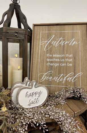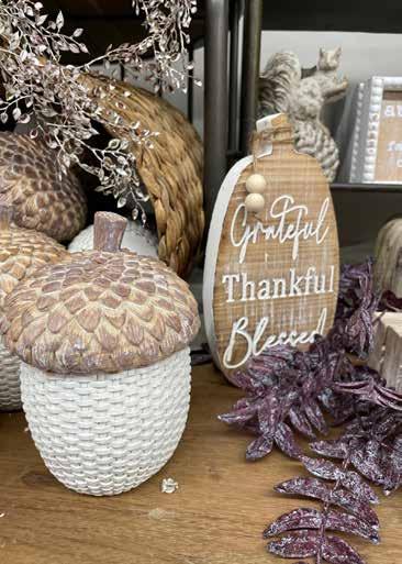 Some of their fall displays feature wall art, vases and baskets laden with pumpkins, autumn candles galore, tableware adorned with the warm hues of the season, faux greenery and florals, gourmet food items that emphasize the hearty flavors of fall and Thanksgivinginspired goods to prepare your home for the season of feeling thankful. You can also find clocks of all kinds — from vintage-inspired timepieces to those embellished with Swarovski crystals — Potpourri, wind chimes and gifts for babies and children.