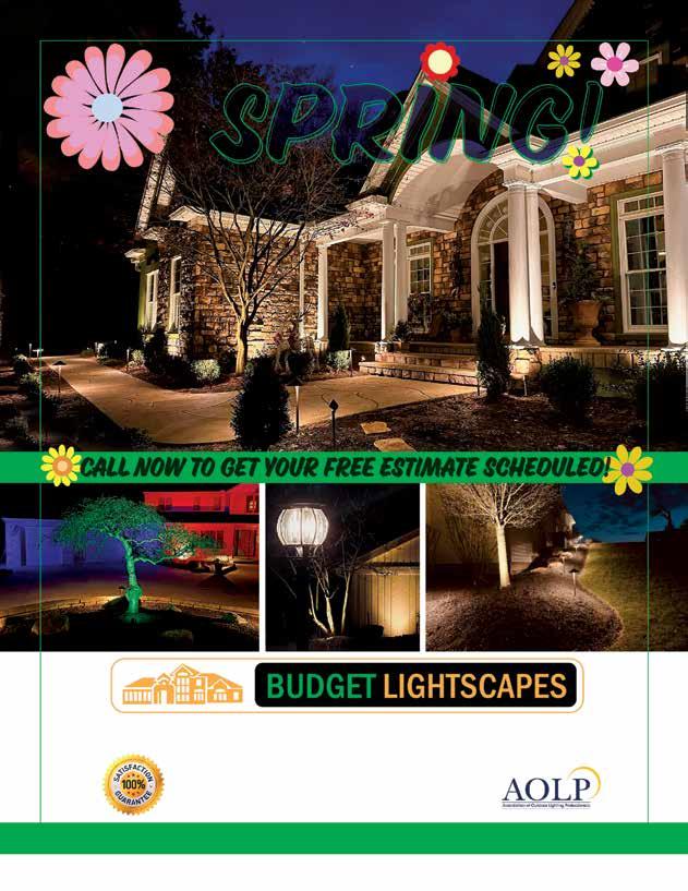 transform with the seasons. Imagine your outdoor space glowing in festive orange and purple hues for fall, transitioning to cheerful red and green lights for the holidays and then dazzling with red, white and blue for July celebrations. These state-ofthe-art lighting systems are designed to adapt seamlessly to any occasion, bringing a dynamic and vibrant ambiance to your home year-round. With JTS Landscaping, you can enjoy a stunning, seasonally appropriate lighting display that enhances your property’s charm and festive spirit without any of the hassle. Of course, classical warm lighting is always available and provides a timeless elegance that suits any season. Whether it’s casting a cozy glow during fall evenings, creating a welcoming atmosphere for holiday gatherings or adding a touch of sophistication to your summer nights, warm lighting enhances the beauty and comfort of your outdoor