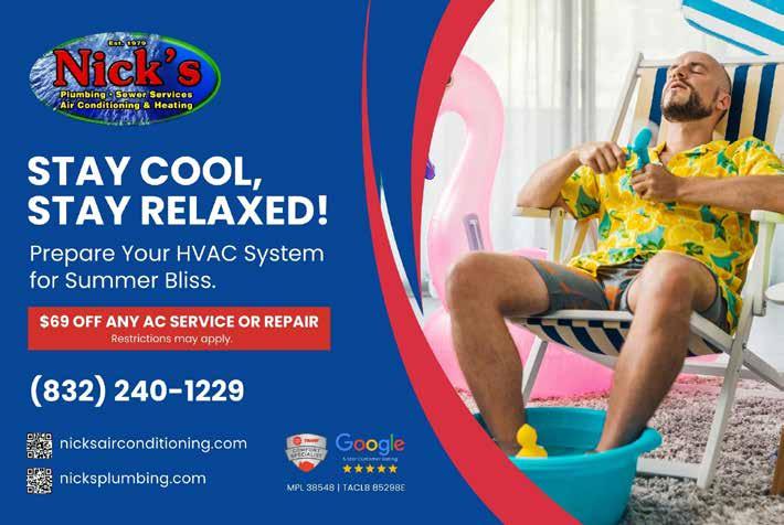 YOUR SATISFACTION IS OUR FUTURE LONG TIME SUPPORTERS OF OUR SERVICES INCLUDE: • ROOFING • INSULATION • PAINTING • HOME IMPROVEMENTS FOR MORE INFO ABOUT OUR SERVICES, CALL US TODAY! 281-463-9077 JPROOFING.NET JustinDugat.com | Justin@JustinDugat.com 949.877.6965 Justin Dugat | Realtor® Spring time is heating up Use this QR code for a no obligation home valuation > Norhill Realty Lic #589521 | Justin Dugat Lic #639881 LISTED BY JUSTIN 53 | CITYLIFESTYLE.COM/MEMORIAL JULY 2023