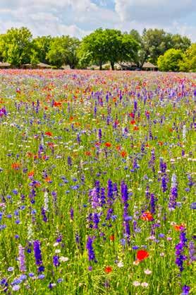 wildflower haven with over 400 species, including bluebonnets, evening primrose, and scarlet sage.