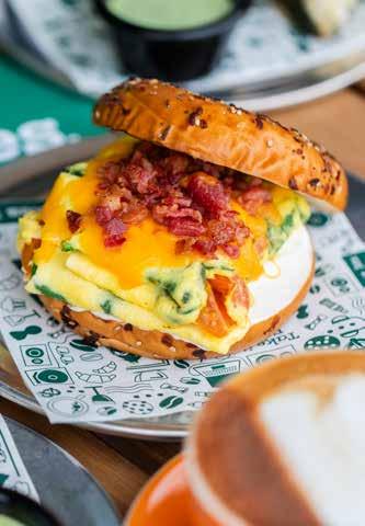 Slowpokes offers various breakfast options, including Breakfast Tacos, Kolaches, Salmon Bagel, Ham & Brie Croissant, a Breakfast Biscuit, Avocado Toast, Churro Donuts, and more.