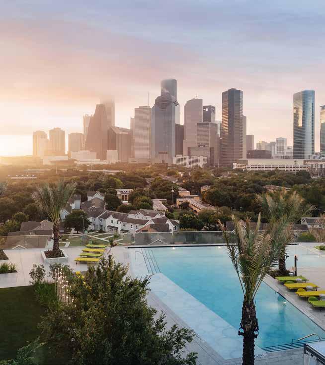 Nestled beside Houston’s gorgeous Buffalo Bayou Park, the newly opened Thompson Houston boasts a one-acrewide rooftop that is truly second to none for beating the heat this summer. As one of Houston’s largest rooftops, the grand space invites guests to immerse themselves in an over-the-top luxury experience.
