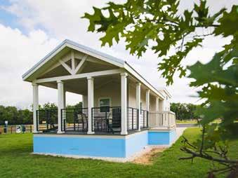 Camp Landa offers a high-end and personalized camping experience in historic downtown New Braunfels, near the Comal River. This boutique RV resort provides 110 RV sites and five cozy cabins for guests without RVs. Each site includes picnic tables, grills, fast and easy hook-ups, and outdoor dining areas. The cabins sleep eight and feature fully stocked kitchens and personal grills.